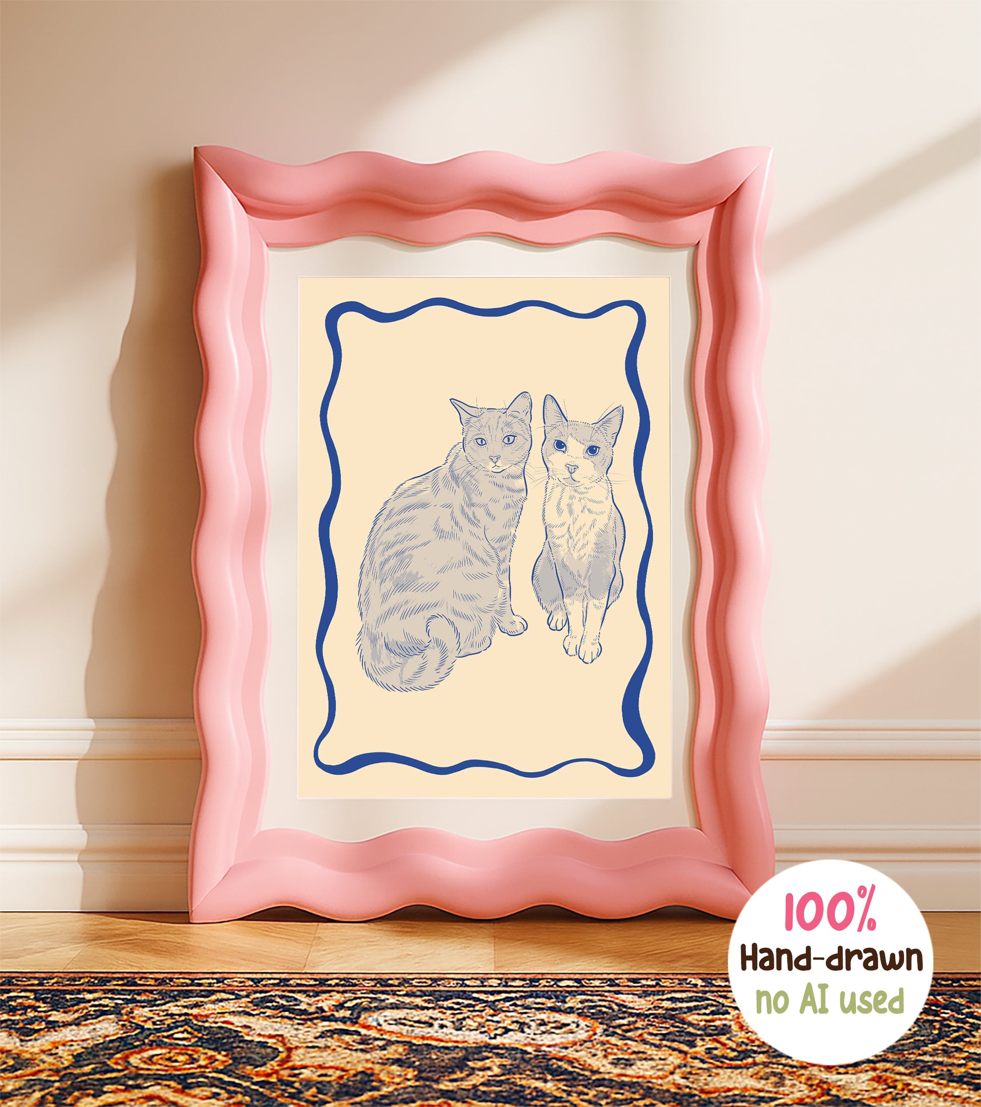 All our products are hand made by real talented artists. We use no AI or apps to create your masterpieces! That's how were able to provide unlimited revisions and a 100% satisfaction guarantee!